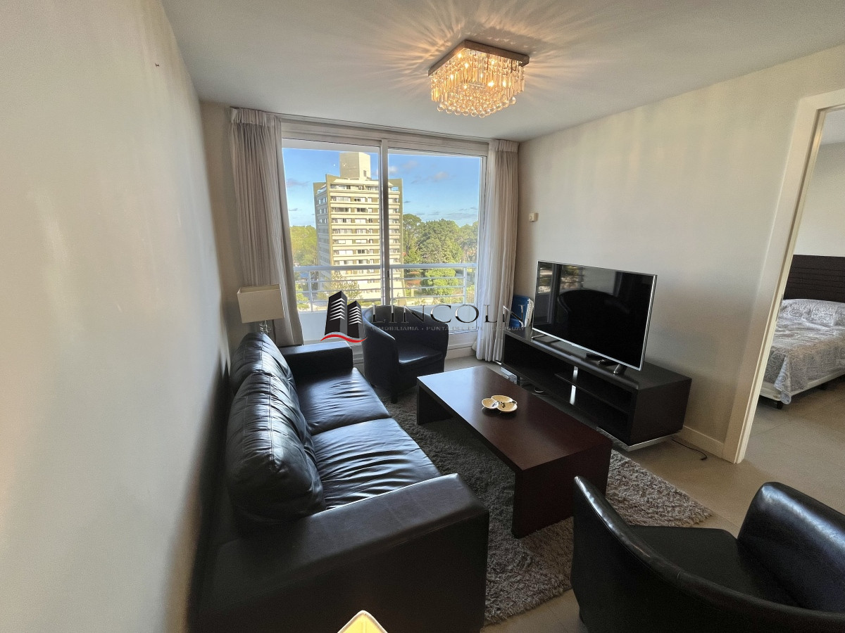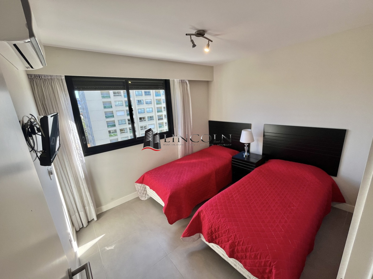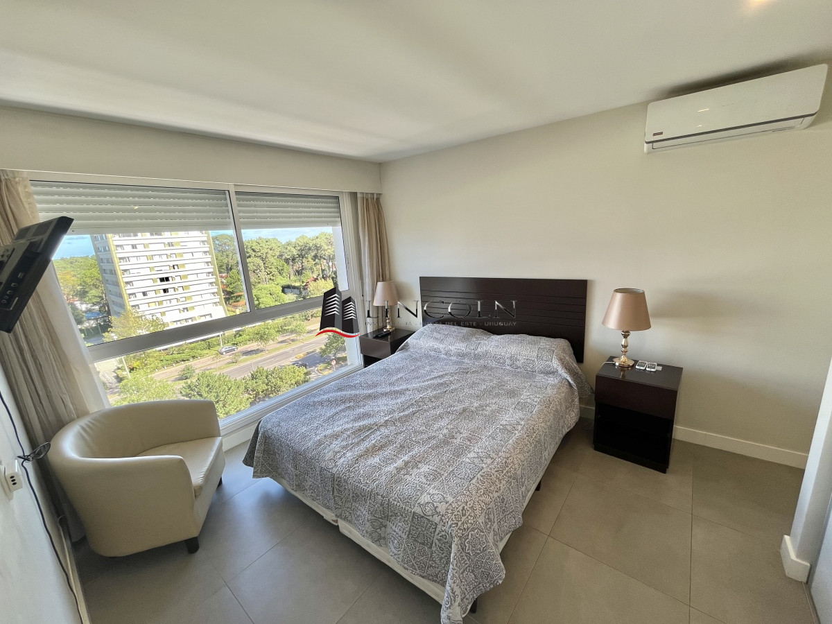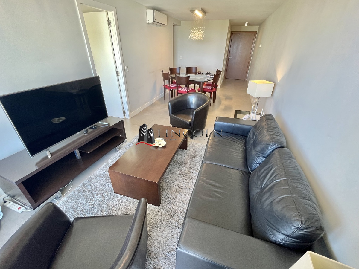 Moderno Departamento con orientación NorOeste, de 2 dormitorios, 2 baños 1 en suite, cocina indepenndiente, living comedor, servicio de mucamas, sauna y piscina climatizada, gran espacio de juegos y recreación, cine, aire acondicionado, loza radiante. Se vende totalmente equipado.